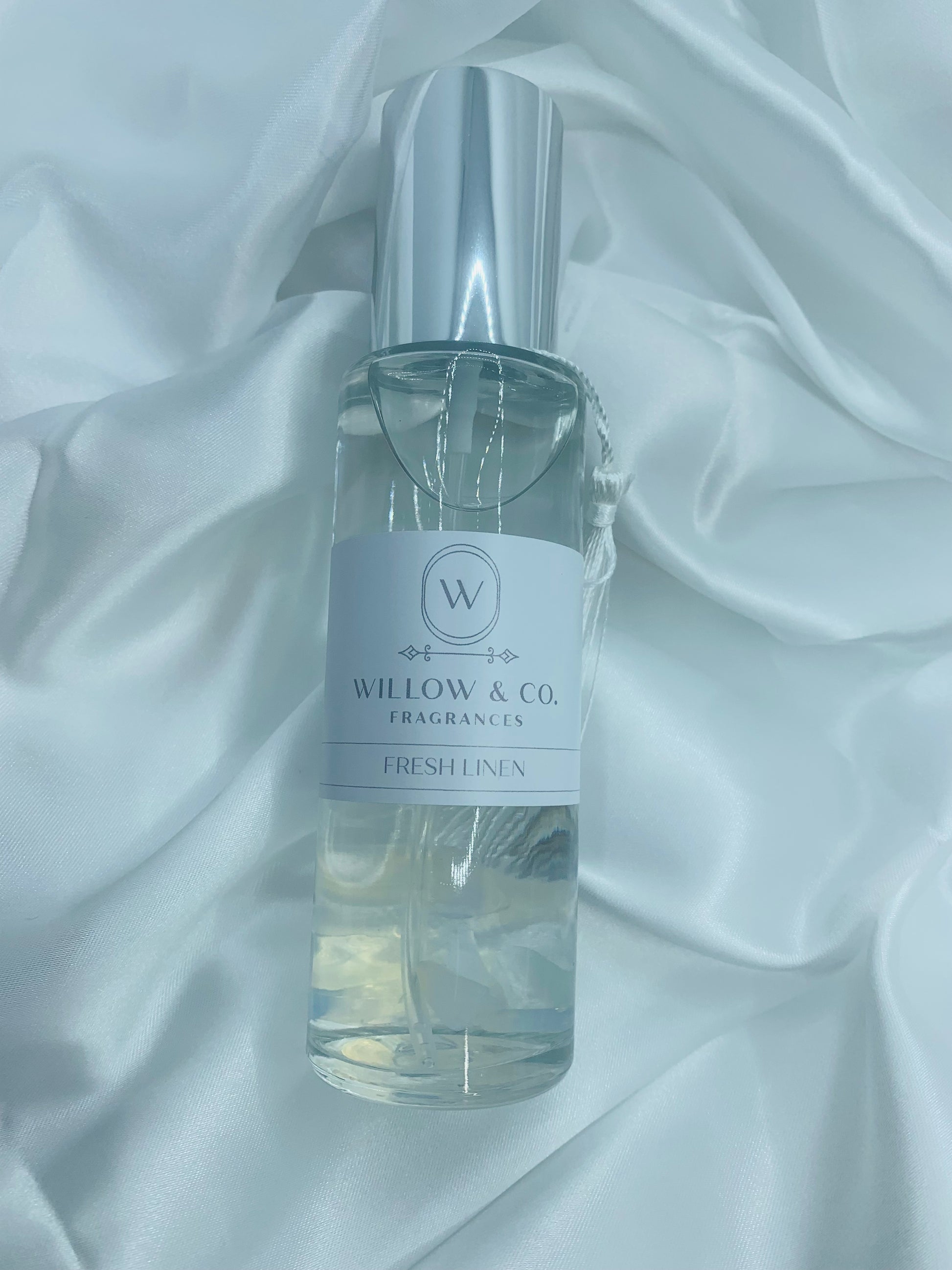 Refresh your home with Willow & Co. Linen Sprays, designed to infuse your space with long lasting, luxurious fragrance. Perfect for bedding, curtains, and upholstery, each spray is crafted with premium fragrance oils to create an inviting and comforting atmosphere.